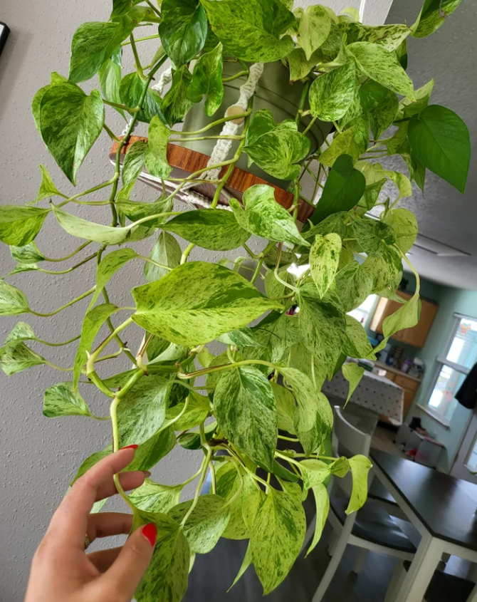 Potos는 현관에 장식적인 느낌을 더해주는 밝은 녹색 잎을 가진 관엽 식물입니다. 흰 그릇에 반점 품종을 키워 상쾌한 현관을 만들 수도 있습니다.